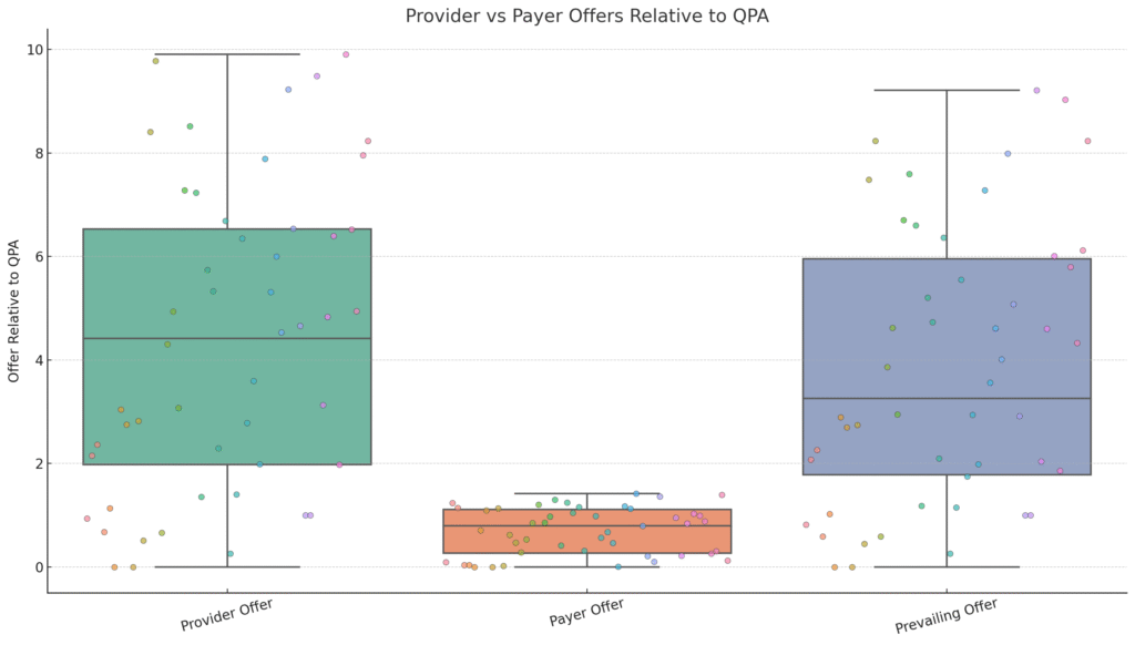 This suggests that arbitrators are not merely ignoring the QPA—they’re choosing values far above it, aligning closely with provider requests. This calls into question the practical value of QPA in dispute resolution. If it’s rarely accepted as “reasonable,” can it still serve as a fair reference point?